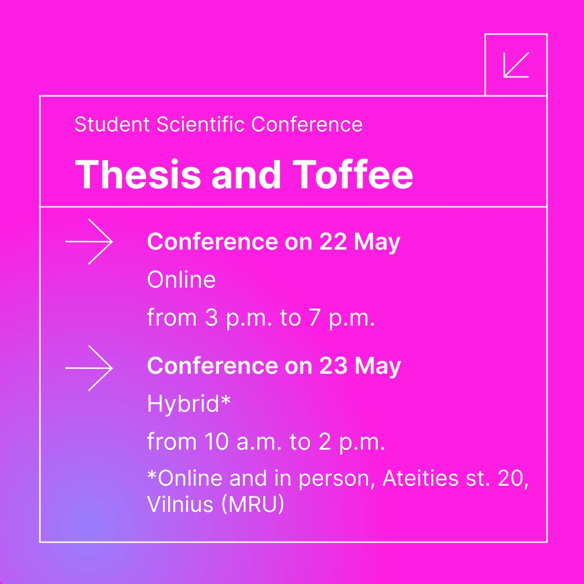 🟣 On May 23, the conference will be held in a hybrid format from 10:00 a.m. to 2:00 p.m., i.e., remotely and in person, at Ateities g. 20, Vilnius (MRU).